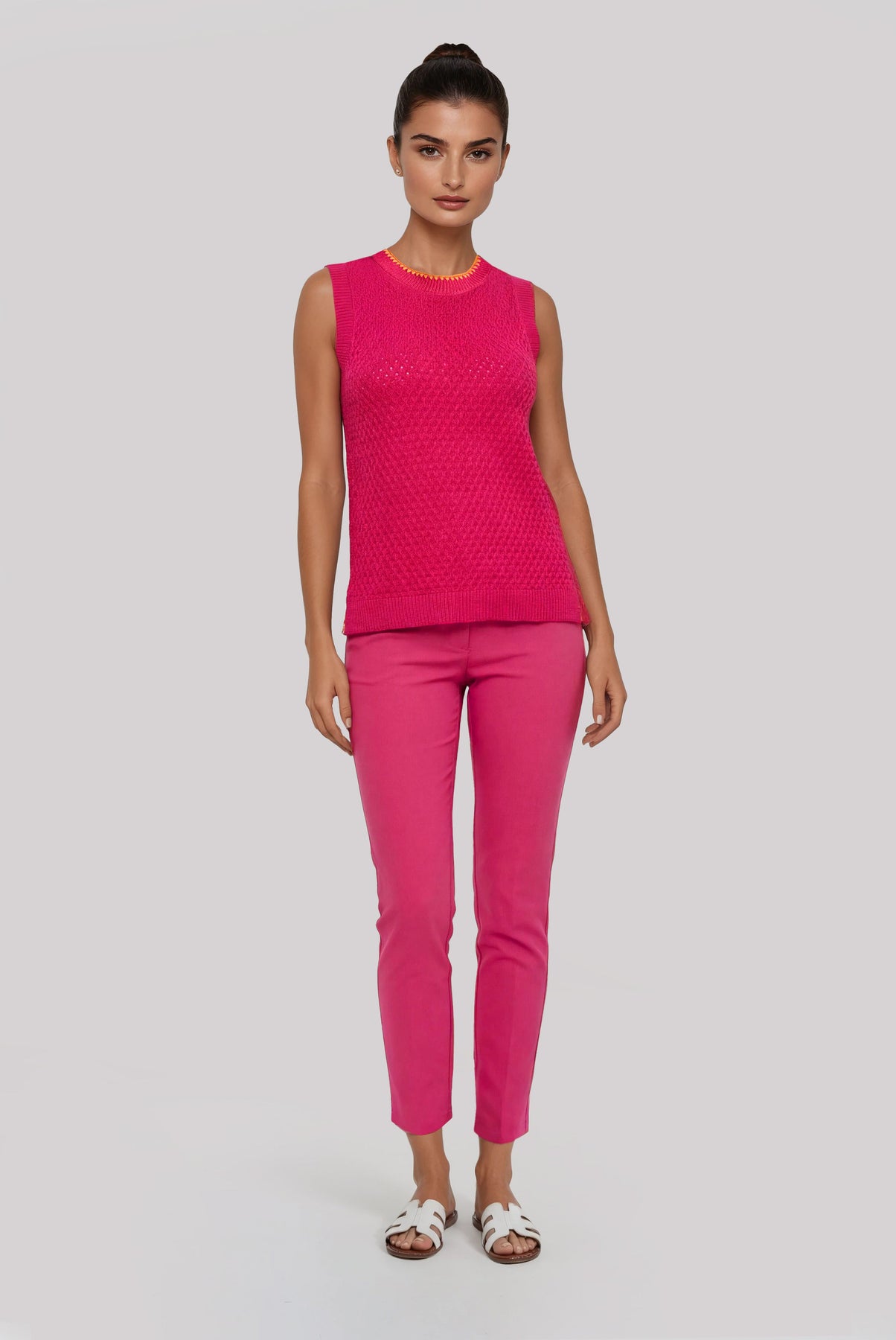 The Tank is the perfect top for the woman who wants effortless style with a vibrant pop of color. From Peace of Cloth's Vibrant Splash collection, this tank top features a lightweight and breathable 100% cotton fabric with eye-catching design details, perfect for adding color to your spring wardrobe. Pair it with the matching Pointelle Crew or layer with the Cardigan for a complete look.